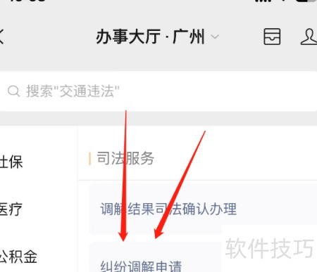 3、 进入政务综合栏,选择纠纷调解申请办理。