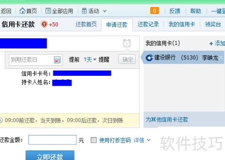 6、 目前,支付宝在电脑端进行转账还款已开始收取一定手续费,而财付通无论是在手机端还是电脑端均免收手续费。下面简要介绍财付通如何偿还信用卡。进入财付通首页后,页面设有多个入口,用户可直接点击进入信用卡还款功能,操作便捷,流程简单,适合日常使用。