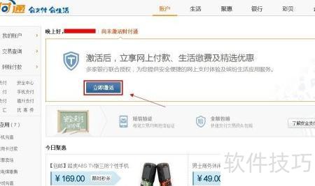 3、 首次登录提示未激活财付通,请点击立即激活。