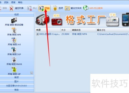 9、 点击菜单栏开始按钮即可启动转换。