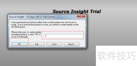 9、 软件启动后需输入序列号,否则仅能试用35天,输入后点击OK即可正常使用。