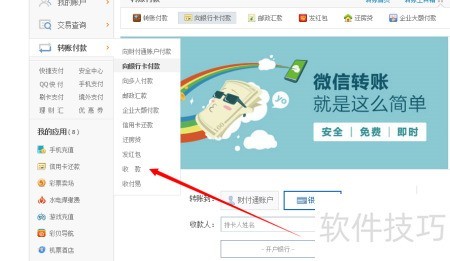 3、 进入后若非财付通首页也无需担心,进行转账等操作可直接在此页面完成,详见图示。