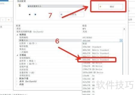 10、 第六步:进入屏幕大小选项,选择480×360移动标准,然后点击确认。