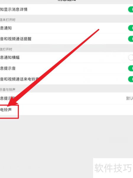 3、 进入消息通知设置,开启来电铃声功能即可。
