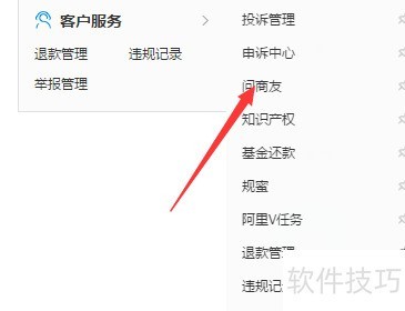 2、 向下滑动左侧菜单至底部,点击客户服务。