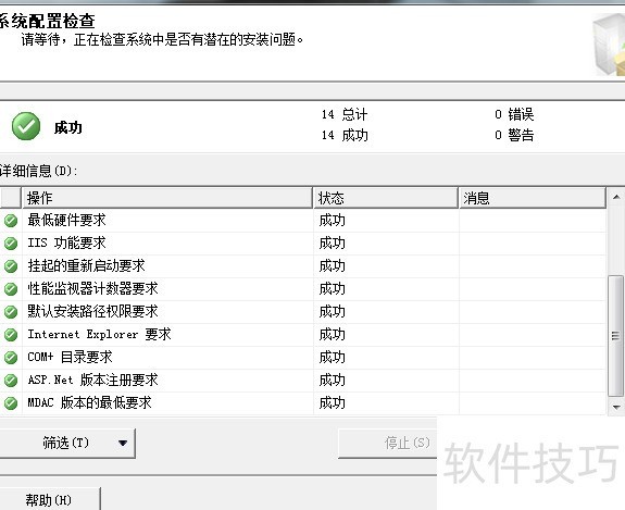 12、 若未提前开启IIS功能,界面将显示初始状态,此时所有项目均能成功运行,只需点击下一步继续操作即可。