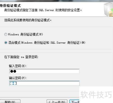 17、 由于其他程序可能需连接数据库,故选用混合模式,并设置sa用户密码。