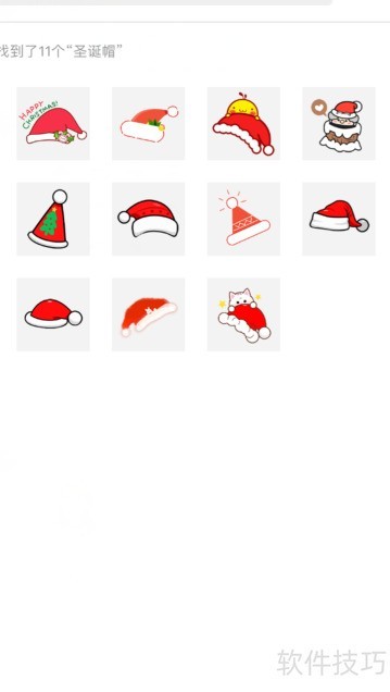 3、 搜索栏输入圣诞帽,相关贴纸即刻显示,点击任一图案即可选用。