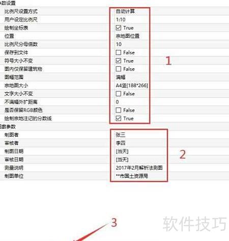 2、 在宗地图参数设置界面配置参数后点击确认按钮