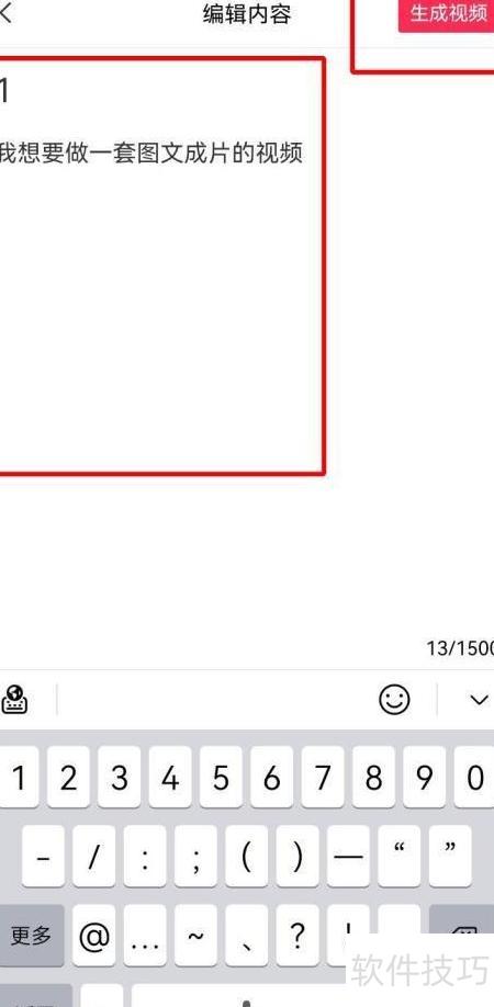 3、 在标题和文案栏输入内容,点击右上角生成视频按钮即可完成制作。