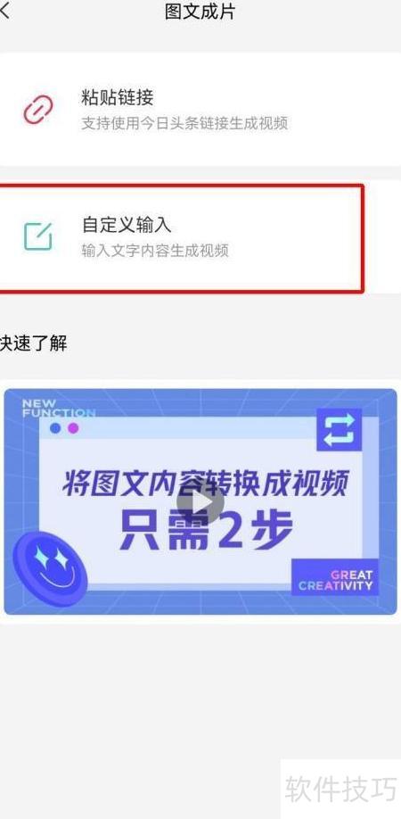 2、 选择自定义输入,若有今日头条文章链接则优先选用。