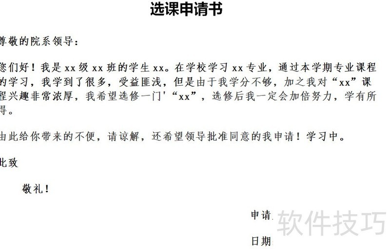 2、 选课申请书模板参考如下