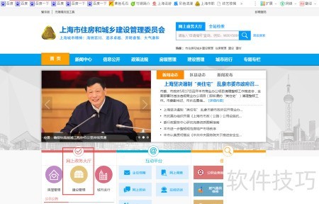 1、 访问上海市住房和城乡建设管理委员会官网,网址位于页面左上角。