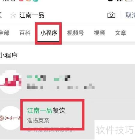 6、 点击页面顶部的小程序,选择江南一品餐饮。