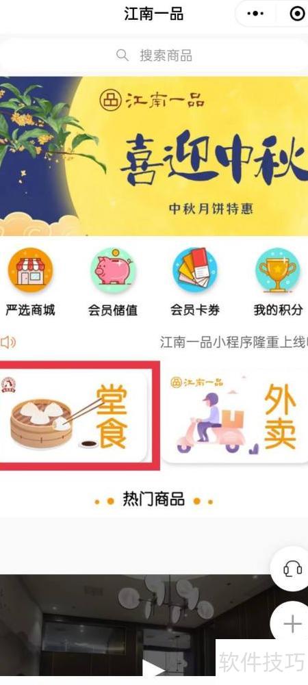 打开微信首页顶部的搜索栏,输入江南一品,找到小程序并进入,选择江南一品餐饮,点击堂食,设置用餐人数与时间,完成预约。