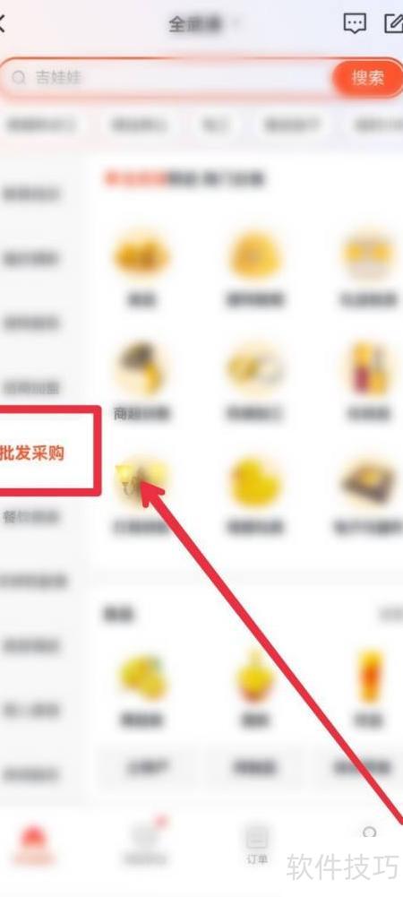 3、 下滑侧边栏,点击批发采购选项。