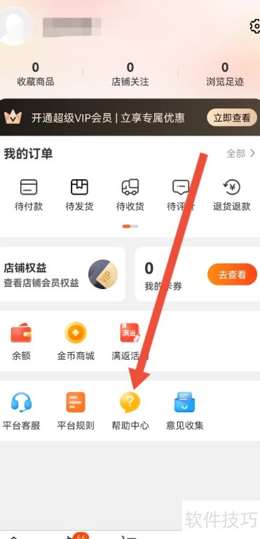 3、 进入个人主页后,选择帮助中心选项。