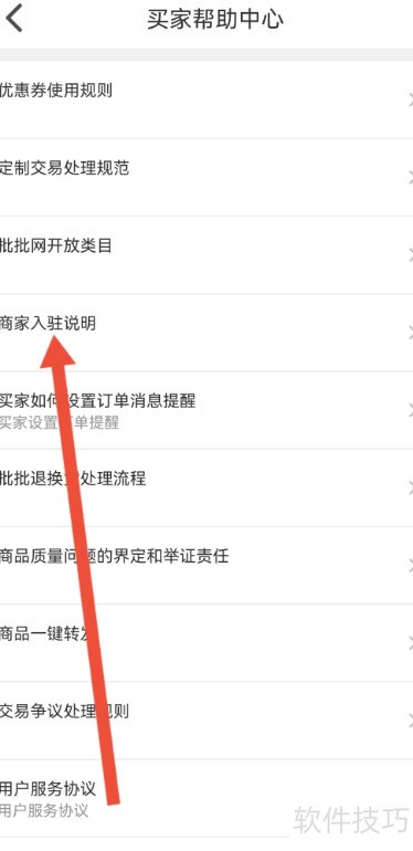 4、 第四步:进入帮助中心,选择商家入驻说明查看详情。