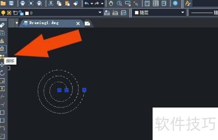 4、 点击左侧工具栏中的偏移工具图标,操作所示。