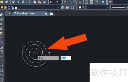 5、 接着在图中用偏移工具选取图形的中心位置,具体操作见下图所示。