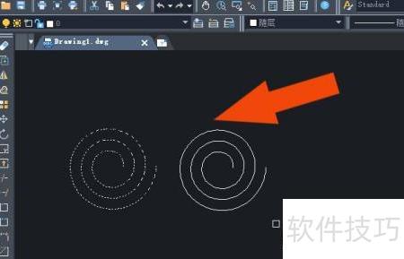 7、 在画布中,利用偏移工具可使螺旋图形实现平行移动,效果所示。通过上述操作步骤,便能掌握在中望CAD2020中使用图形偏移功能的方法。