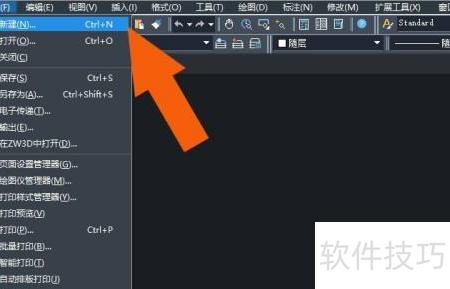 1、 启动计算机后,运行中望CAD2020,点击菜单栏中的新建选项,操作所示。