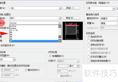 4、 选定打印机后,需确定图纸的打印尺寸,可选择A3或A4纸张,也可使用更大规格的专用图纸,前提是打印机具备相应支持功能。具体尺寸应根据实际需求和设备能力进行合理选择。