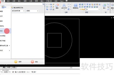 2、 单击软件左上角的中望CAD图标,从下拉菜单中直接选取打印选项即可。