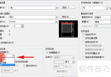 5、 接下来需选定打印的图纸区域,即打印范围。系统默认提供四种选项:窗口、范围、图形界限和显示,可根据实际需求进行选择。