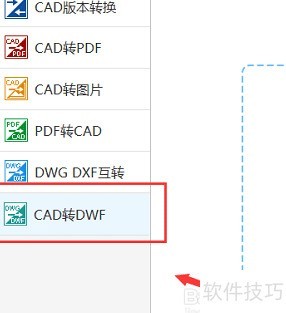 2、 打开CAD转换工具,左侧菜单列有多种功能,点击选择CAD转DWF即可开始转换操作。