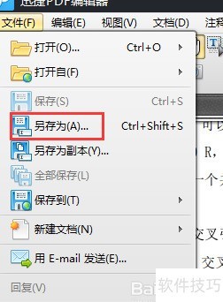 4、 打开PDF编辑器的文件菜单,点击下拉选项中的另存为进行保存。
