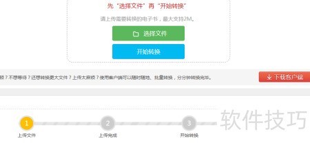 8、 点击选择文件按钮,从弹出窗口中添加要转换的电子书,确认后开始转换,完成后即可下载并查看转换结果。