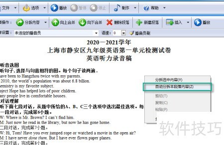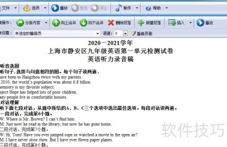 1、 将听力题目文本导入软件中处理