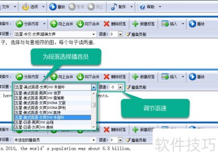 6、 根据分拆内容选择合适播音员并调整语速