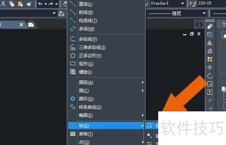 4、 点击绘图菜单中的图块选项,选择创建功能,操作所示。