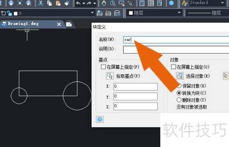 5、 在弹出的图块窗口内输入名称,具体操作所示。