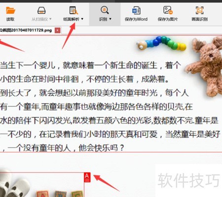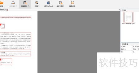 4、 打开图片文件后,点击页面解析按钮,即可识别出文字区域。