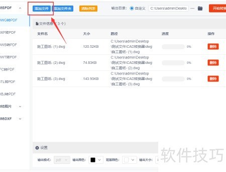 2、 点击软件左上角蓝色的按钮,可批量导入需转为PDF的DWG文件,支持多文件同时处理,操作便捷高效。