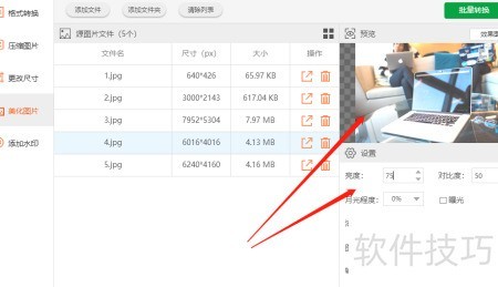 4、 所示,调整图片亮度时,上方预览图可实时显示处理效果。
