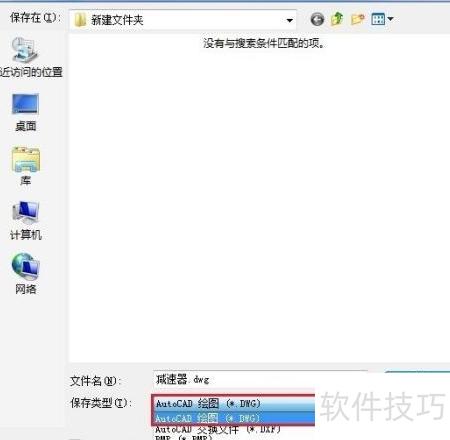 4、 选择文件菜单中的导出选项,在弹出的对话框里将保存类型设为AutoCAD绘图,确认后点击保存按钮即可。