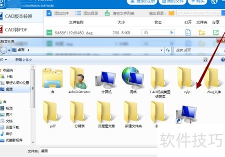 4、 添加DWG文件后,点击软件界面的浏览按钮,弹出窗口中选择目标文件夹,用于保存即将转换格式的文件。