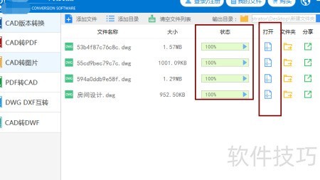 6、 当进度条显示100%时,表示文件格式已转换完成,此时点击打开按钮即可查看文件内容。