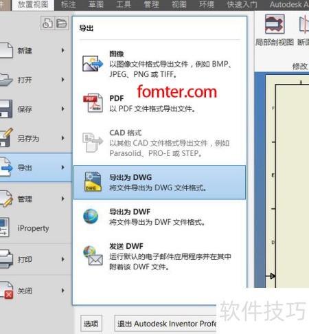 2、 启动Inventor软件,创建新工程图并导出为DWG格式文件。