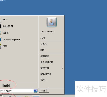 1、 首先打开Windows Server 2008系统任务栏的开始菜单选项