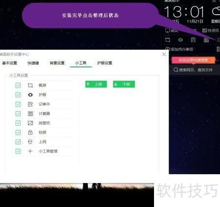 4、 安装完成后,桌面右上角会出现一个控制台,点击其中的方形图标,即可自动整理桌面文件。日后需要归档新内容时,只需重复此操作,简单便捷,高效实用。