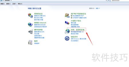 2、 进入控制面板,点击右侧时钟、语言和区域选项。