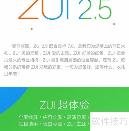 1、 尽管ZUK系列已退出市场,ZUI系统却得以延续。自ZUI 1.9起,系统定期推出重大更新,其中ZUI 2.5版本尤为引人关注,带来了诸多功能优化与体验提升,成为发展历程中的重要一环。
