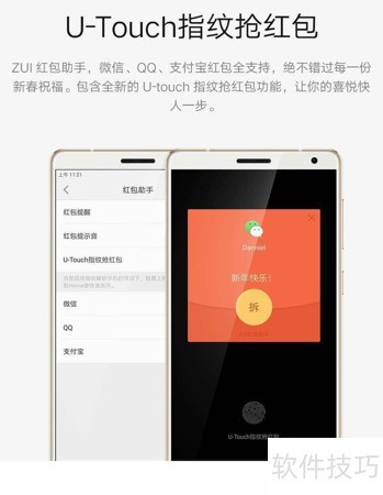 6、 新增U-Touch指纹抢红包功能,告别手慢尴尬,轻轻一触即可快速领取,让你不错过每个红包和新春祝福。