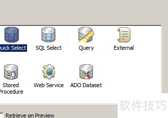 23、 快速选取数据源,通过SQL语句或查询指定,支持自定义配置,亦可由存储过程动态生成所需数据源。