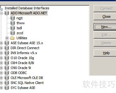 5、 右侧窗口会显示相关设置,选择ADO Microsoft ADO.NET,然后点击New…按钮(2所示)。